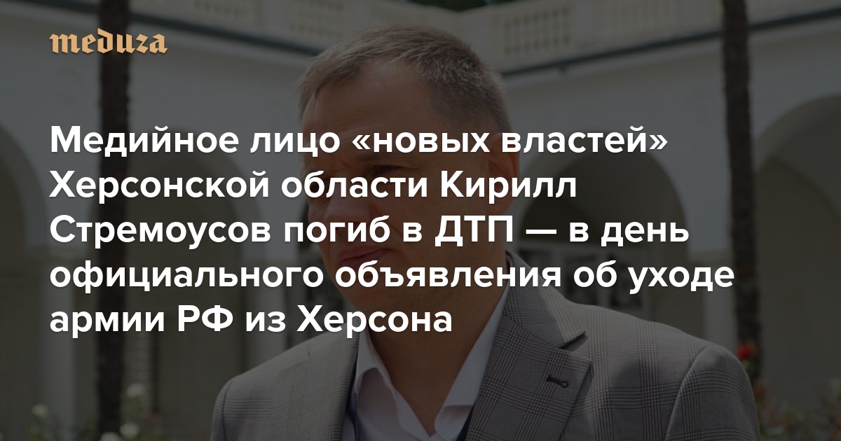 Медийное лицо «новых властей» Херсонской области Кирилл Стремоусов погиб в ДТП — в день официального объявления об уходе армии РФ из Херсона Рассказываем, что мы знаем о его гибели — и чем он был известен в Украине