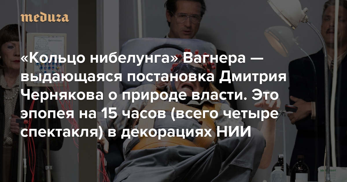 В Германии состоялась одна из главных мировых театральных премьер года — «Кольцо нибелунга» Рихарда Вагнера в постановке российского режиссера Дмитрия Чернякова. Осенние показы в Берлинской государственной опере проводят тремя циклами — чтобы посмотреть эту эпическую работу целиком, нужно за неделю сходить на четыре спектакля. Самая продолжительная часть идет пять с половиной часов, а все вместе — целых 15. Действие в постановке Чернякова разворачивается в лаборатории НИИ, где ставят эксперименты над людьми. Кинокритик «Медузы» Антон Долин посмотрел оперу полностью и рассказывает, какой получилась эта версия истории о людях и богах.