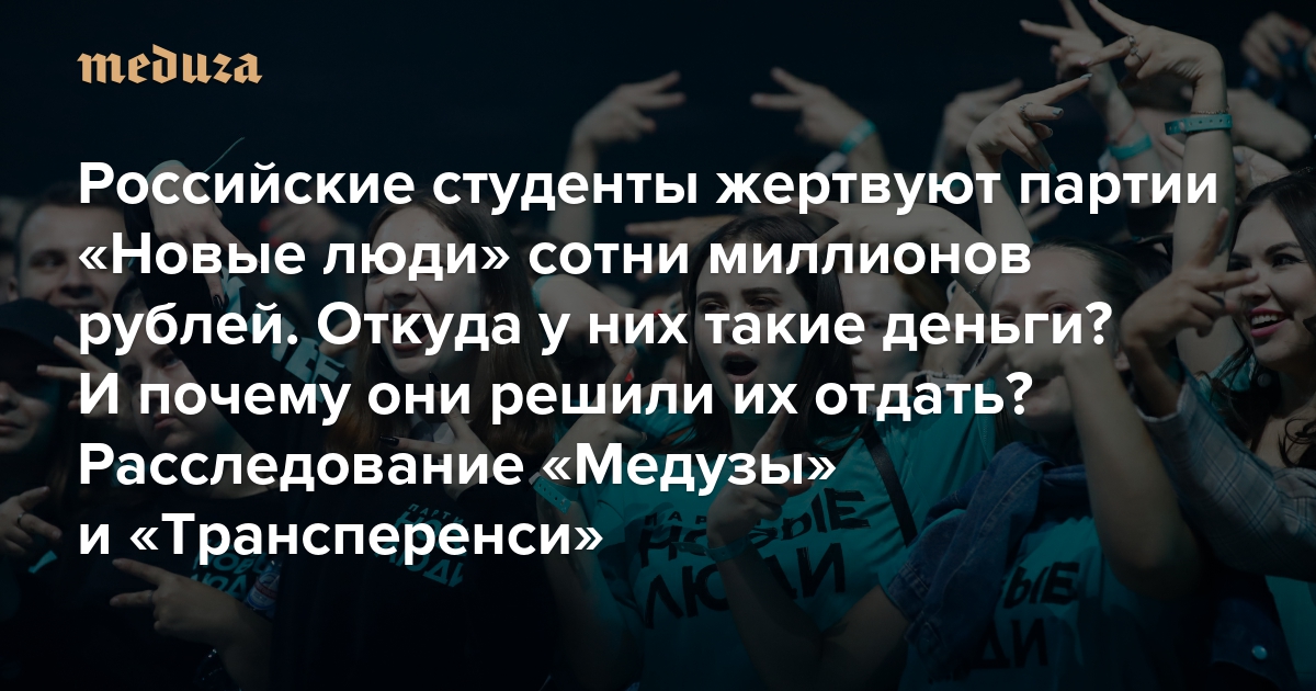 Российские студенты жертвуют партии «Новые люди» сотни миллионов рублей. Откуда у них такие деньги? И почему они решили их отдать? Расследование «Медузы» и «Трансперенси»