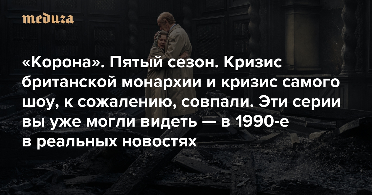 «Корона». Пятый сезон Кризис британской монархии и кризис самого шоу, к сожалению, совпали. Эти серии вы уже могли видеть — в 1990-е в реальных новостях