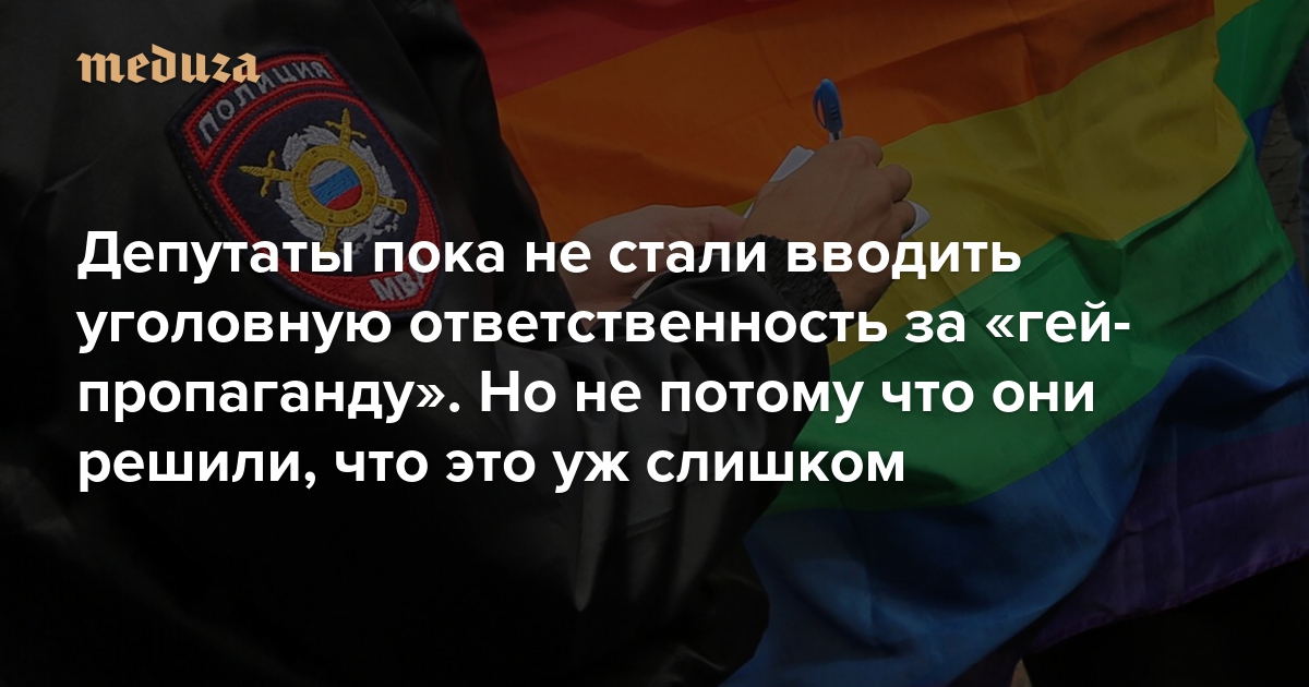 От идеи ввести уголовную ответственность за повторное нарушение закона о запрете «ЛГБТ-пропаганды» депутаты решили отказаться вовсе не потому, что она показалась им слишком радикальной. Дело в процедурных тонкостях. В 2015 году Госдума приняла закон, который разрешает вносить изменения в УК только в виде самостоятельного законопроекта. Именно из-за этого закона уголовную ответственность нельзя вносить в законопроекты на стадии обсуждения поправок.
