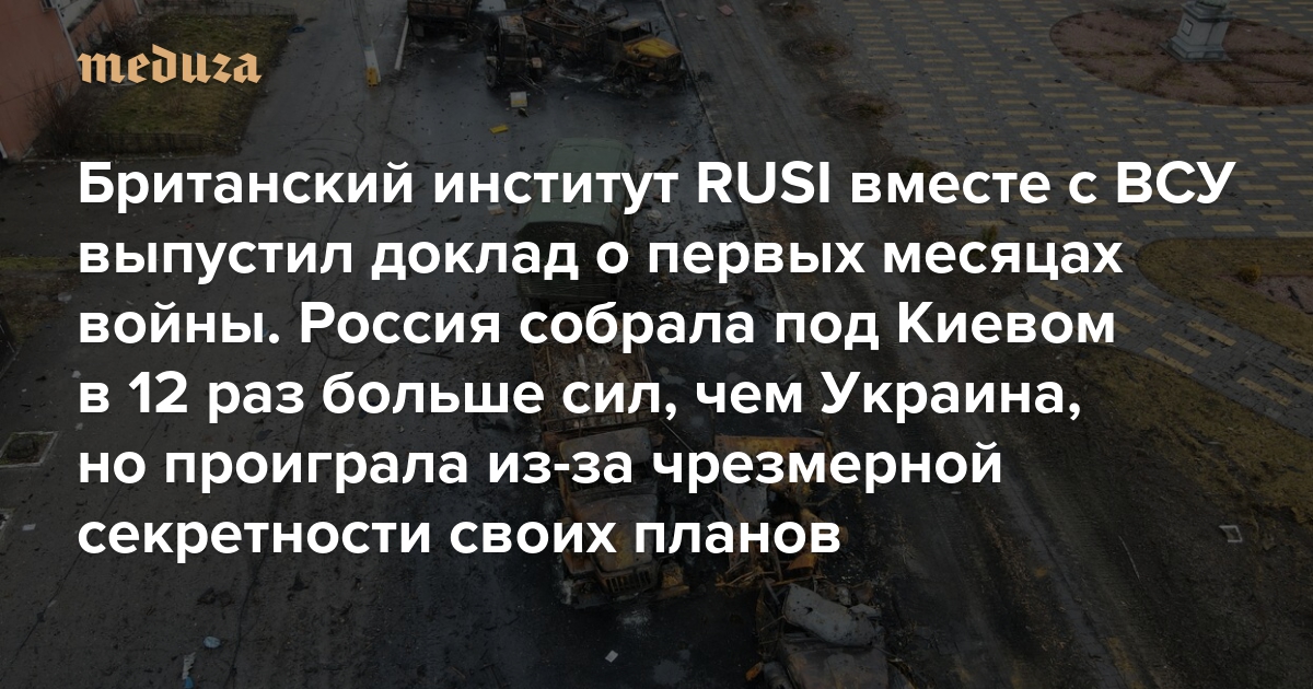 Британский институт RUSI вместе с ВСУ выпустил доклад о первых месяцах войны Россия собрала под Киевом в 12 раз больше сил, чем Украина, но проиграла из-за чрезмерной секретности своих планов