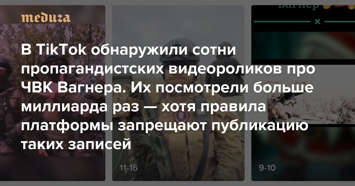 В TikTok обнаружили сотни пропагандистских видеороликов про ЧВК Вагнера Их посмотрели больше миллиарда раз — хотя правила платформы запрещают публикацию таких записей
