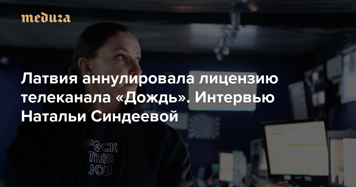 Утром 6 декабря латвийские власти отозвали лицензию канала «Дождь» на вещание. Национальный совет по электронным СМИ заявил, что телеканал представляет «угрозу национальной безопасности и общественному порядку». Такое решение было принято на фоне острой публичной дискуссии, вызванной двусмысленным заявлением ведущего «Дождя» Алексея Коростелева в прямом эфире по поводу войны (подробнее читайте тут). Спецкор «Медузы» Светлана Рейтер поговорила с гендиректором «Дождя» Натальей Синдеевой — сразу после того, как стало известно о решении Латвии.