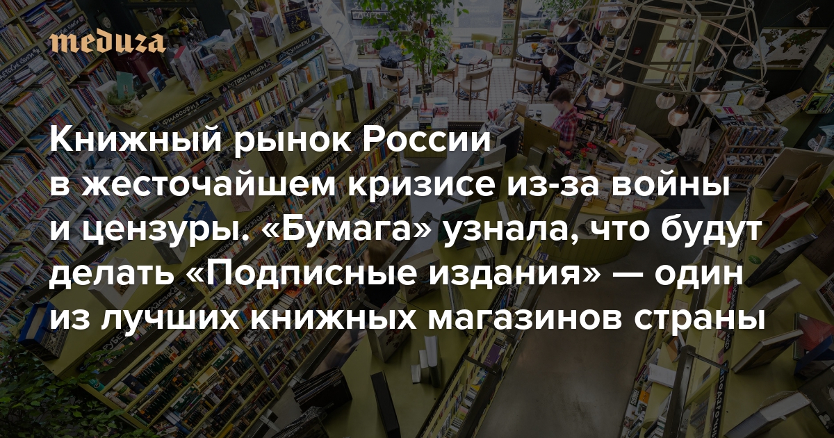 «Пока нас корешками вперед не будут выносить, мы ничего убирать не собираемся» Книжный рынок России в жесточайшем кризисе из-за войны и цензуры. «Бумага» узнала, что будут делать «Подписные издания» — один из лучших книжных магазинов страны