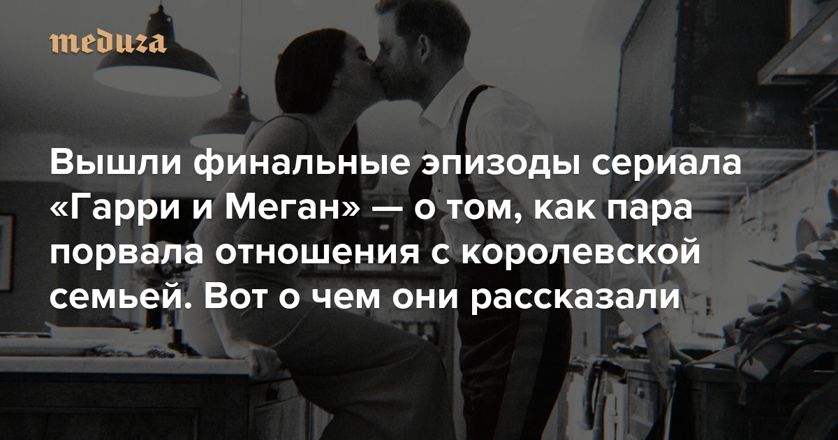 «Брат кричал на меня. Отец говорил неправду. А бабушка просто тихо сидела» Вышли финальные эпизоды сериала «Гарри и Меган» — о том, как пара порвала отношения с королевской семьей. Вот о чем они рассказали