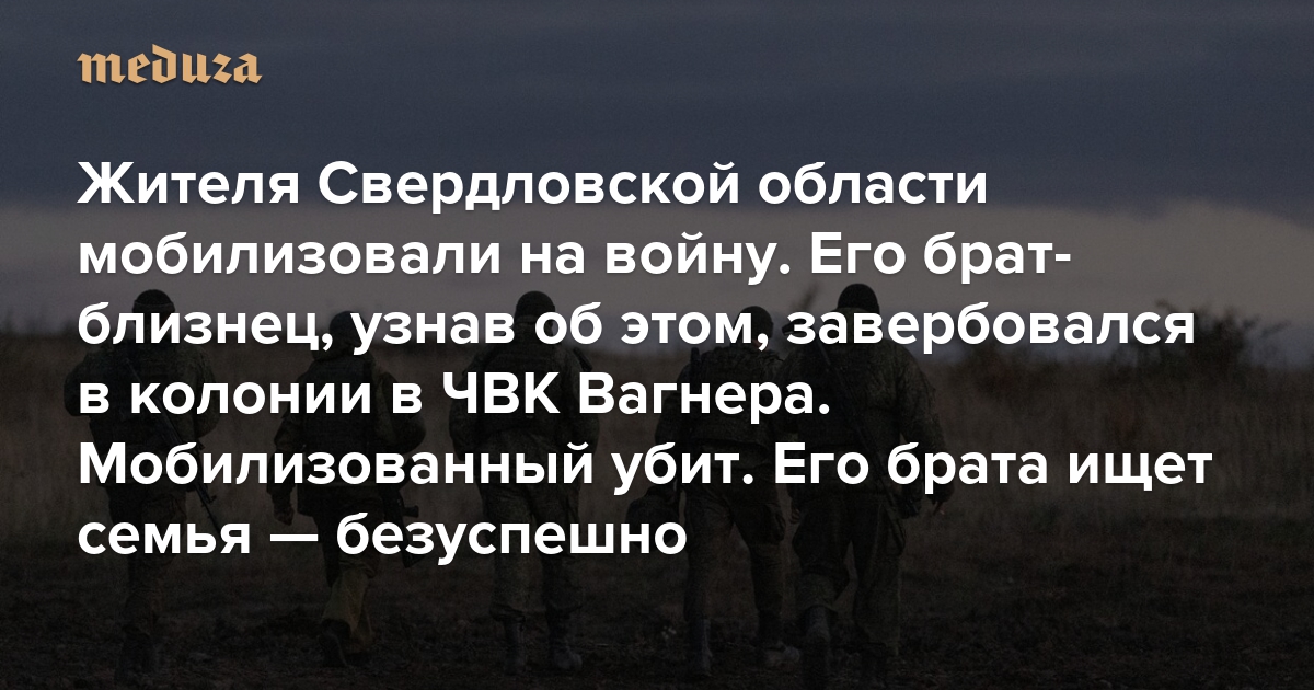 Жителя Свердловской области мобилизовали на войну. Его брат-близнец, узнав об этом, завербовался в колонии в ЧВК Вагнера Мобилизованный убит. Его брата ищет семья — безуспешно