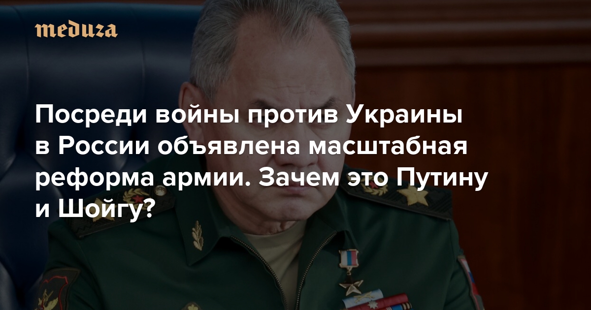 Посреди войны против Украины в России объявлена масштабная реформа армии. Зачем это Путину и Шойгу? Ну, помимо того, что она свидетельствует о явных ошибках военного командования