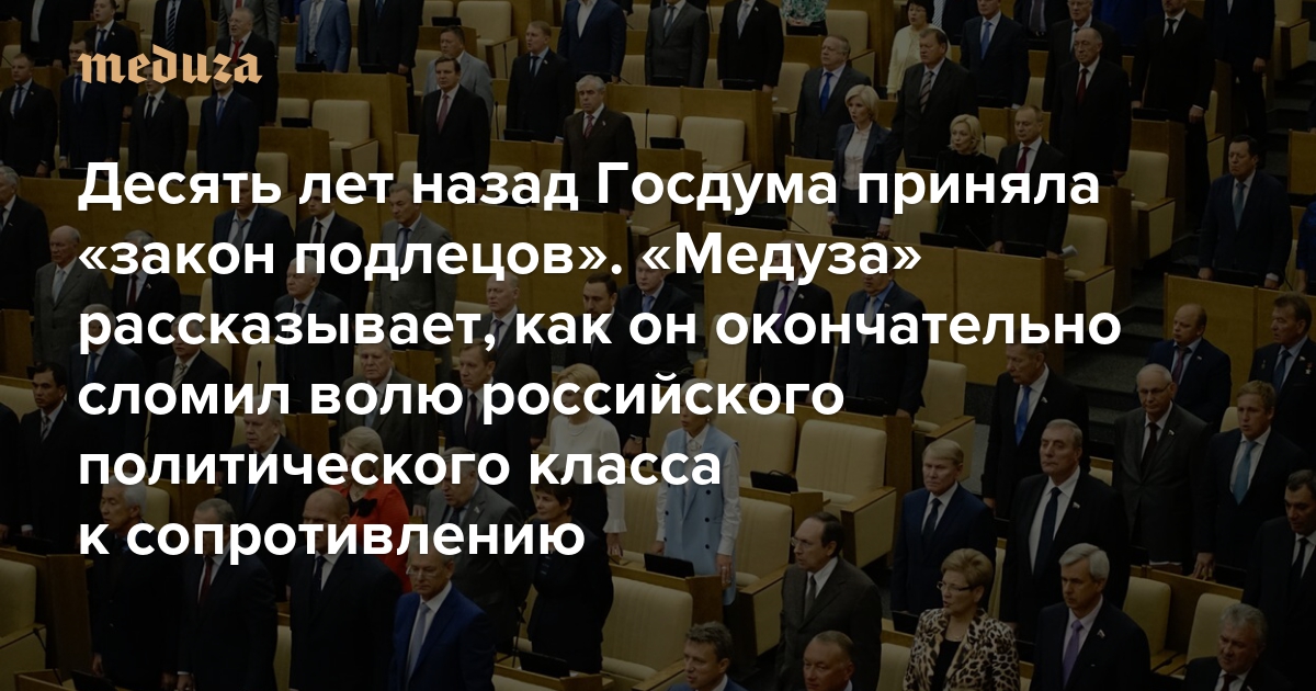 Я людоед или нет? Ответ положительный Десять лет назад Госдума приняла «закон подлецов». «Медуза» рассказывает, как он окончательно сломил волю российского политического класса к сопротивлению