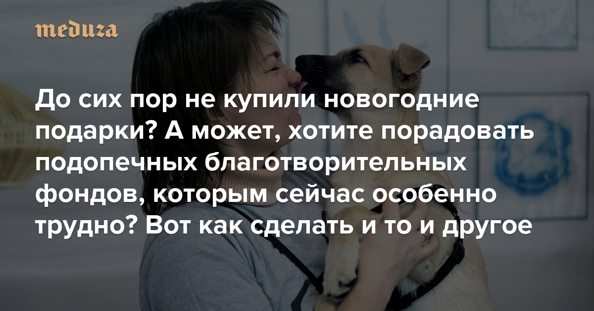 Перед каждым Новым годом российские некоммерческие организации придумывают разные способы помочь тем, о ком они заботятся, — и самим себе. А в 2022-м, на фоне войны и экономического кризиса, таким организациям особенно нужна поддержка. «Медуза» рассказывает о самых полезных и нетривиальных идеях — как купить новогодние подарки нуждающимся людям (и животным), даже если они находятся в другом городе. А еще о том, что подарить близким — и одновременно помочь благотворителям.