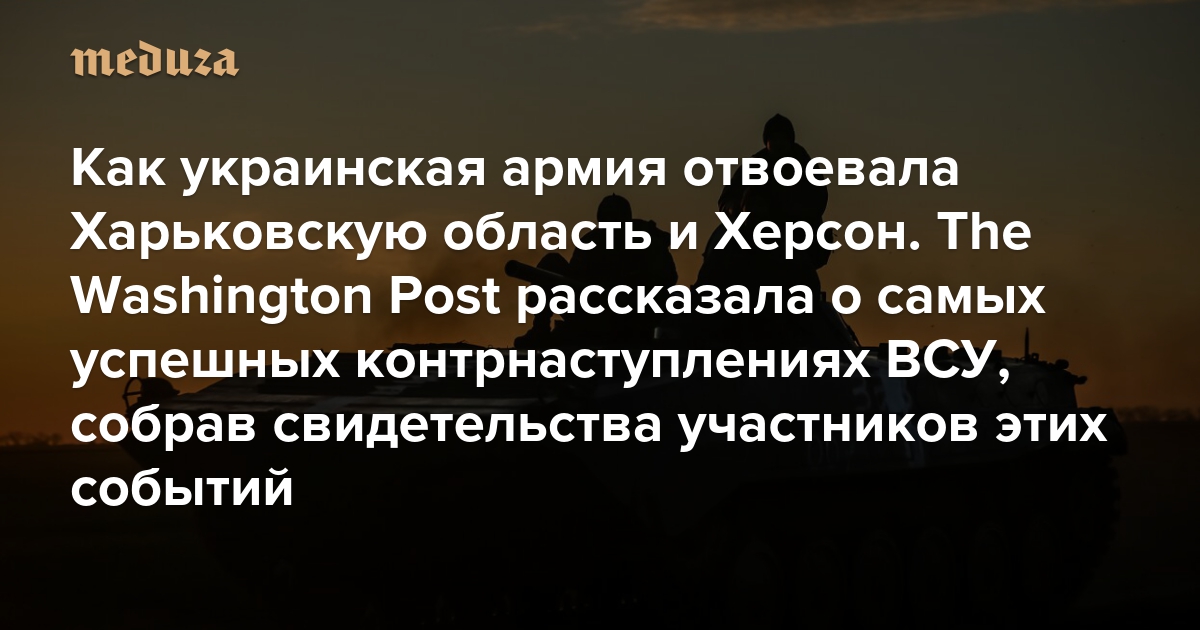 Как украинская армия отвоевала Харьковскую область и Херсон The Washington Post рассказала о самых успешных контрнаступлениях ВСУ, собрав свидетельства участников этих событий