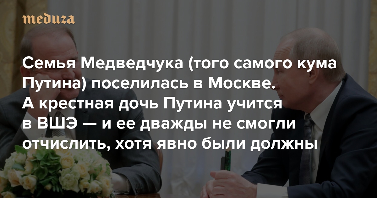 Семья Медведчука (того самого кума Путина) поселилась в Москве. А крестная дочь Путина учится в ВШЭ — и ее дважды не смогли отчислить, хотя явно были должны Расследование «Медузы» и «Лаборатории университетской прозрачности»