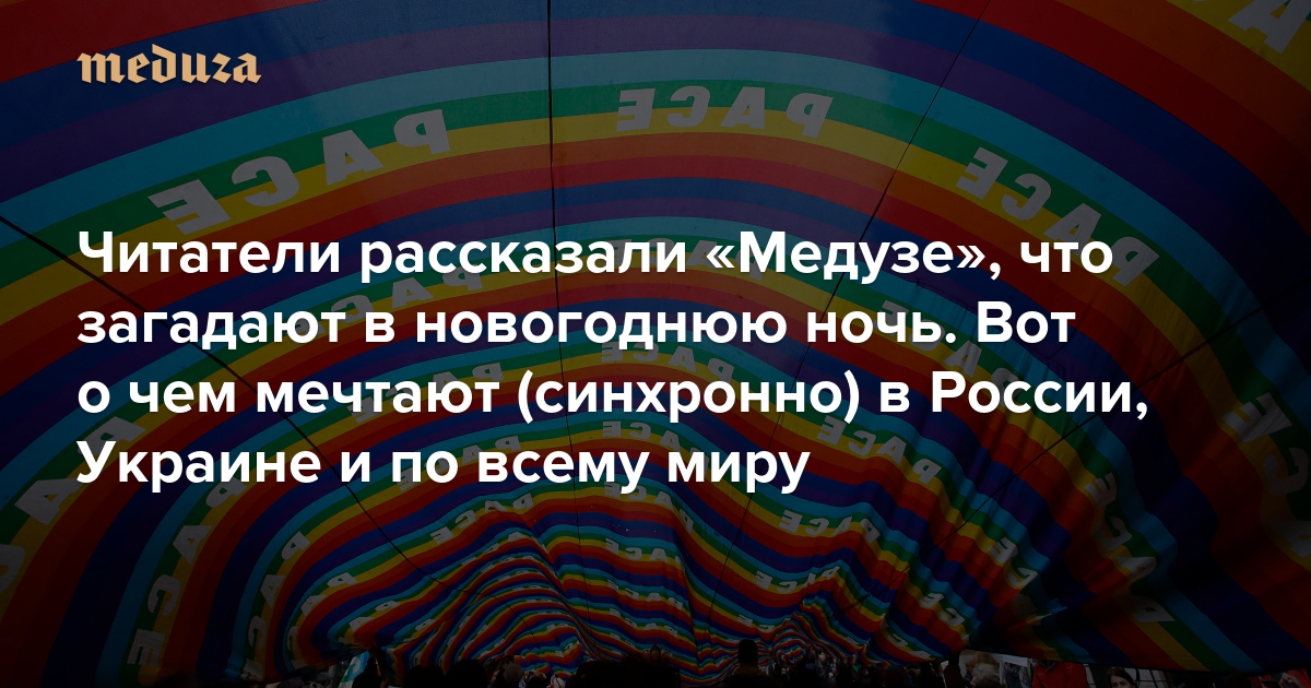 «Будь ты проклят, 2022 год. Хочу полностью новый мир в 2023-м» Читатели рассказали «Медузе», что загадают в новогоднюю ночь. Вот о чем мечтают (синхронно) в России, Украине и по всему миру