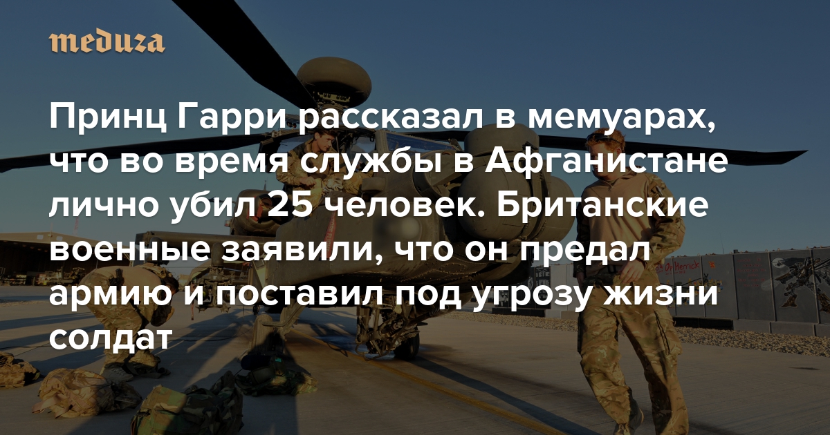 Принц Гарри рассказал в мемуарах, что во время службы в Афганистане лично убил 25 человек. Британские военные заявили, что он предал армию и поставил под угрозу жизни солдат