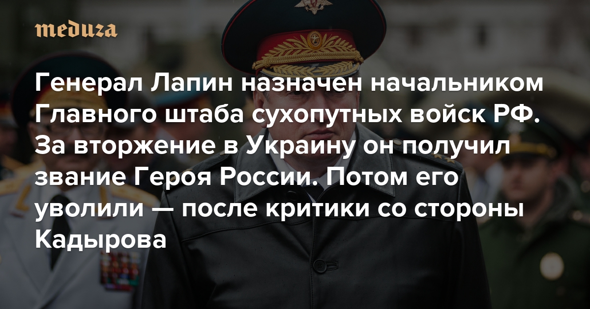 Генерал Лапин назначен начальником Главного штаба сухопутных войск РФ За вторжение в Украину он получил звание Героя России. Потом его уволили — после критики со стороны Кадырова