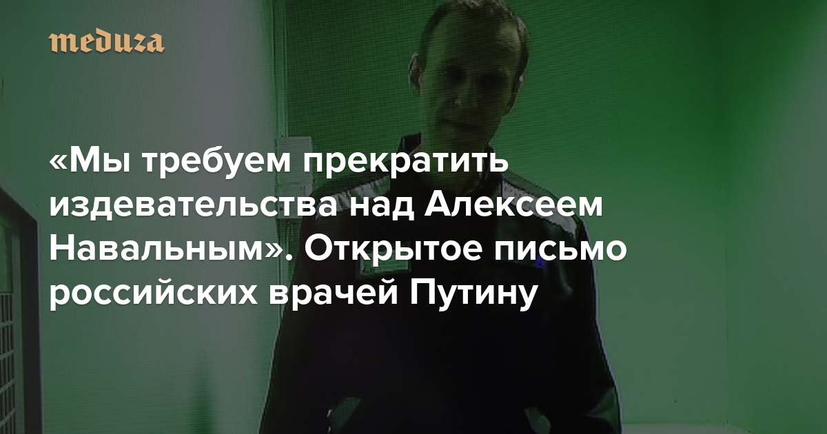 9 января стало известно, что Алексей Навальный, находящийся в ИК-6 во Владимирской области, в десятый раз за время своего заключения попал в штрафной изолятор. 15 суток ШИЗО Навальному назначили за то, что он умывался в неположенное время. Адвокат Вадим Кобзев сообщил, что в камере ШИЗО Навальный находится «с температурой, лихорадкой и кашлем», добавив, что политику пытаются передать в колонию лекарства. Представители врачебного сообщества обратились с открытым письмом к президенту РФ, потребовав прекратить издевательства над Навальным и обеспечить политику необходимую медицинскую помощь. Письмо опубликовали в фейсбуке врачи Александр Полупан и Александр Ванюков, призвав представителей медицинского сообщества присоединиться к обращению. «Медуза» публикует полный текст письма.