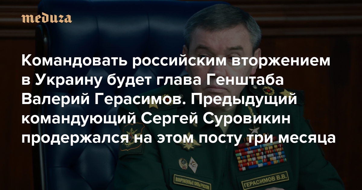 Командовать российским вторжением в Украину будет глава Генштаба Валерий Герасимов Предыдущий командующий Сергей Суровикин продержался на этом посту три месяца. Теперь он лишь зам Герасимова