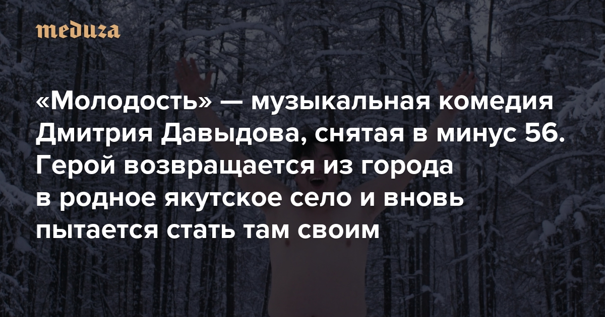«Молодость» — музыкальная комедия Дмитрия Давыдова, снятая в минус 56 Герой возвращается из города в родное якутское село и вновь пытается стать там своим