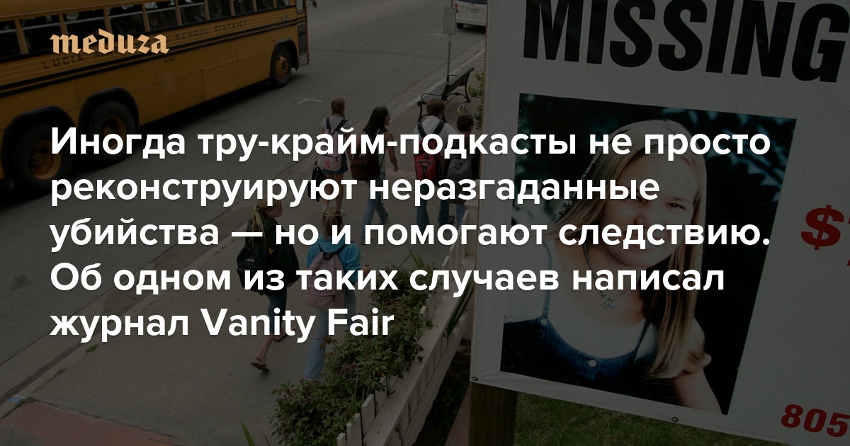 Иногда тру-крайм-подкасты не просто реконструируют неразгаданные убийства — но и помогают следствию Об одном из таких случаев написал журнал Vanity Fair