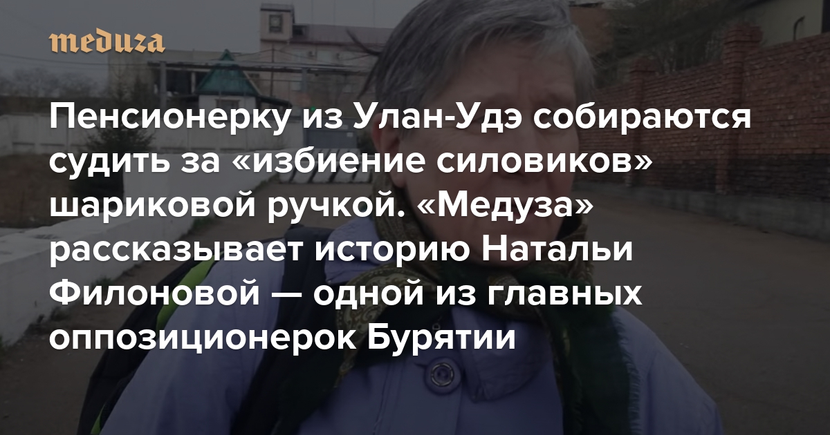 Пенсионерку из Улан-Удэ собираются судить за «избиение силовиков» шариковой ручкой «Медуза» рассказывает историю Натальи Филоновой — одной из главных оппозиционерок Бурятии