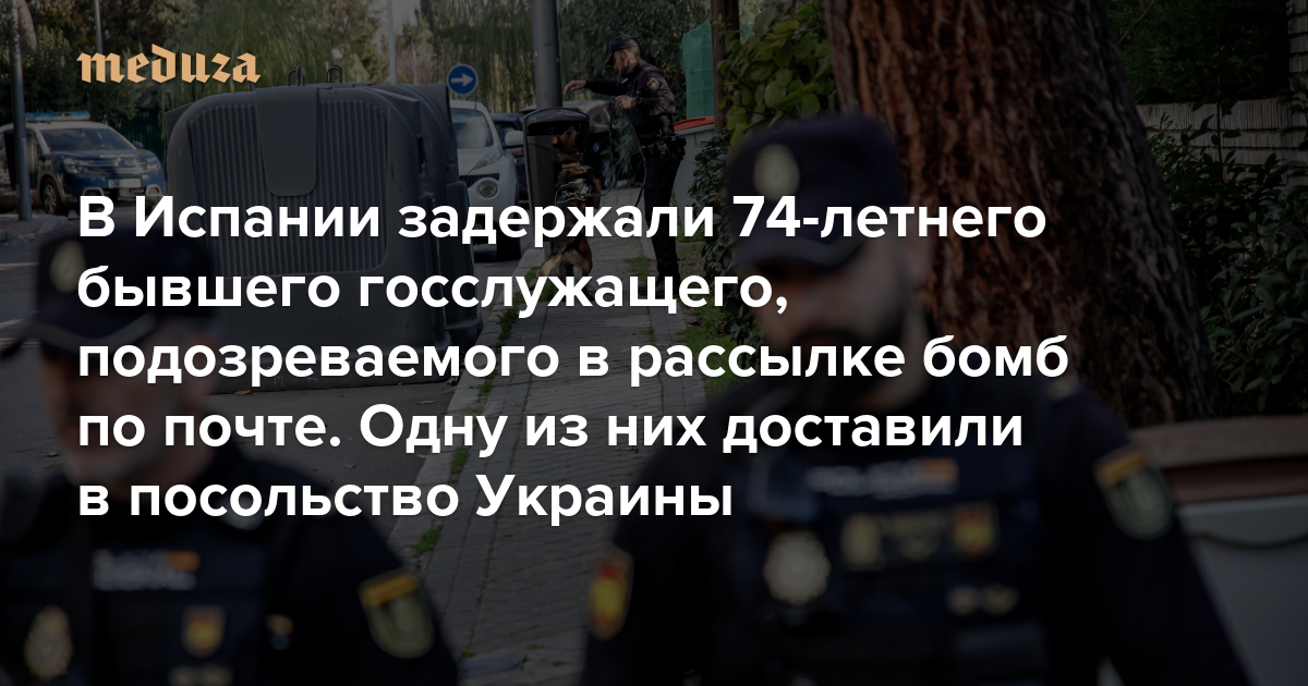 В Испании задержали 74-летнего бывшего госслужащего, подозреваемого в рассылке бомб по почте. Одну из них доставили в посольство Украины По словам источников, это «одинокий и странный человек с пророссийскими взглядами»