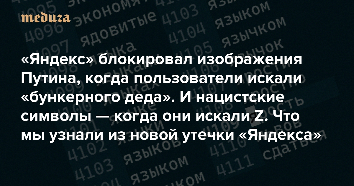 «Яндекс» блокировал изображения Путина, когда пользователи искали «бункерного деда». И нацистские символы — когда они искали Z Что «Медуза» узнала из новой утечки «Яндекса». Предупреждаем: много мата 🤬