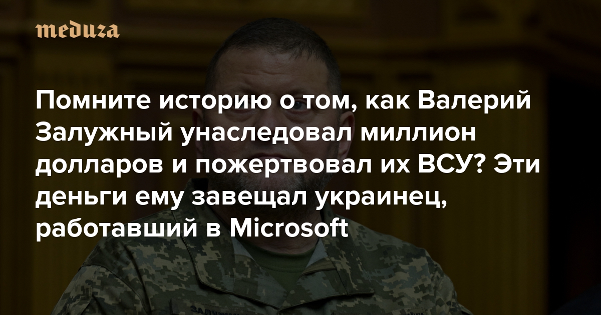 Помните историю о том, как Валерий Залужный унаследовал миллион долларов и пожертвовал их ВСУ? Эти деньги ему завещал украинец, работавший в Microsoft Среди других его наследников — израильская армия и народный ансамбль из Киева