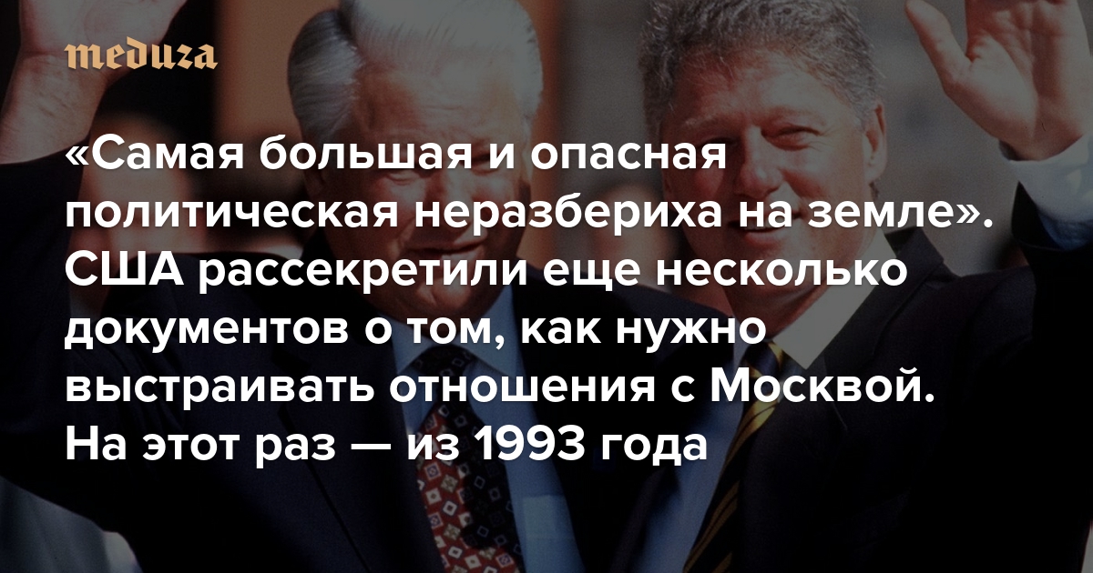 «Самая большая и опасная политическая неразбериха на земле» США рассекретили еще несколько документов о том, как нужно выстраивать отношения с Москвой. На этот раз — из 1993 года