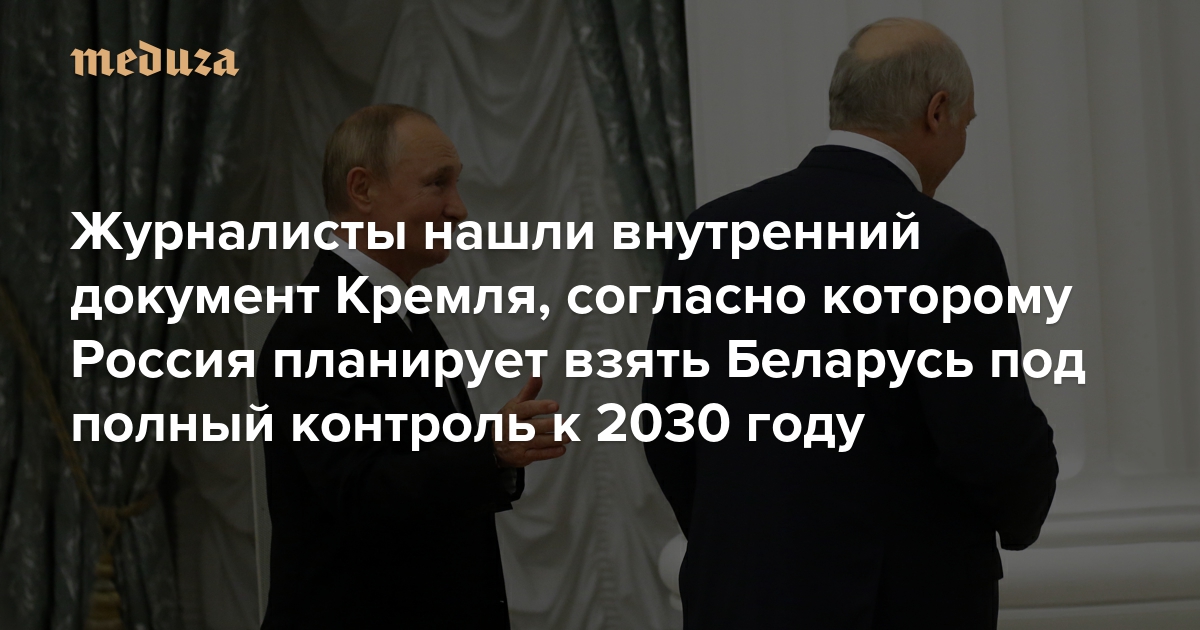 Журналисты нашли внутренний документ Кремля, согласно которому Россия собирается взять Беларусь под полный контроль к 2030 году В разработке плана участвовали Генштаб, ФСБ, ГРУ и администрация президента