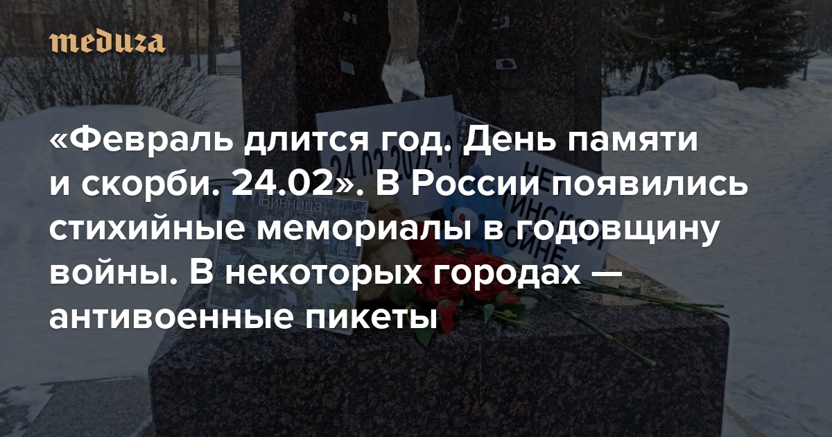 «Февраль длится год. День памяти и скорби. 24.02» В России появились стихийные мемориалы в годовщину войны. В некоторых городах — антивоенные пикеты