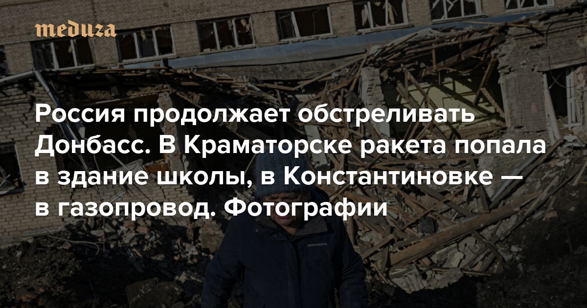 Россия продолжает обстреливать Донбасс. В Краматорске ракета попала в здание школы, в Константиновке — в газопровод Триста семьдесят шестой день войны. Фотографии
