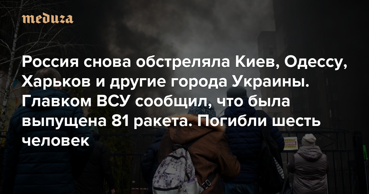 Россия снова обстреляла Киев, Одессу, Харьков и другие города Украины Главком ВСУ сообщил, что была выпущена 81 ракета. Погибли шесть человек