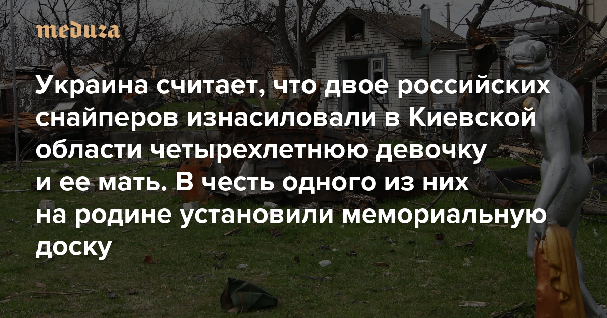 Украина считает, что двое российских снайперов изнасиловали в Киевской области четырехлетнюю девочку и ее мать (и еще нескольких женщин) В честь одного из них на родине установили мемориальную доску