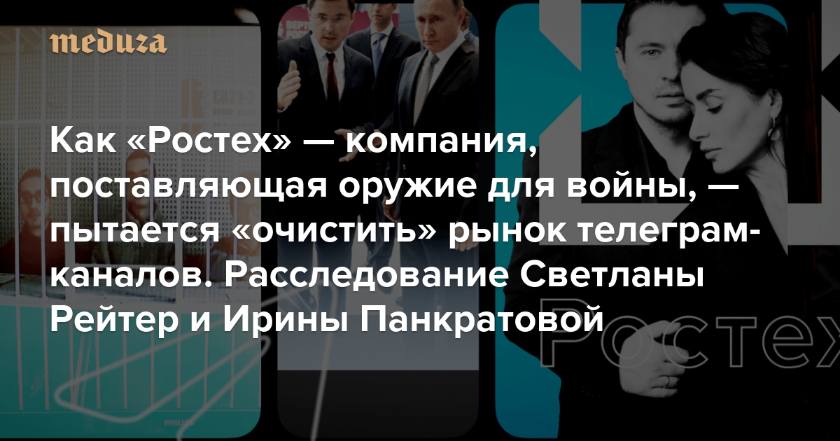 Теперь всех можно грести под себя Как «Ростех» — компания, поставляющая оружие для войны, — пытается «очистить» рынок телеграм-каналов. Расследование Светланы Рейтер и Ирины Панкратовой