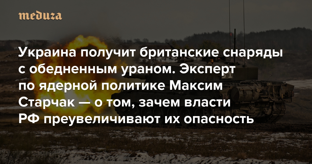 20 марта министр обороны Великобритании Аннабель Голди в ответ на парламентский запрос раскрыла информацию о том, что, наряду с поставкой танков Challenger 2, Лондон готовится направить Украине бронебойные снаряды с содержанием обедненного урана, поскольку именно такие боеприпасы наиболее эффективны «при поражении современных танков и бронетехники». Российские руководители почти синхронно отреагировали на это очередными обвинениями в адрес Запада. Президент Владимир Путин расценил слова Голди как подтверждение готовности западных стран «воевать с Россией до последнего украинца уже не на словах, а на деле»; министр обороны Сергей Шойгу констатировал, что «пройдена еще одна ступенька [по лестнице ядерной эскалации] и [ступенек] остается все меньше и меньше»; а глава МИД Сергей Лавров назвал планы Великобритании нарушением международного гуманитарного права. О том, что такое обедненный уран и насколько опасны боеприпасы с его содержанием, на каких войнах уже применялись такие снаряды, есть ли их запасы у самой России и почему Кремль явно преувеличивает масштаб угрозы, «Медуза» поговорила с Максимом Старчаком — экспертом по российской ядерной политике, научным сотрудником Центра международной и оборонной политики Университета Куинс в Канаде.