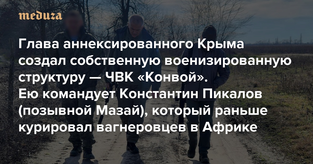 Глава аннексированного Крыма создал собственную военизированную структуру — ЧВК «Конвой» Ею командует Константин Пикалов (позывной Мазай), который раньше курировал вагнеровцев в Африке