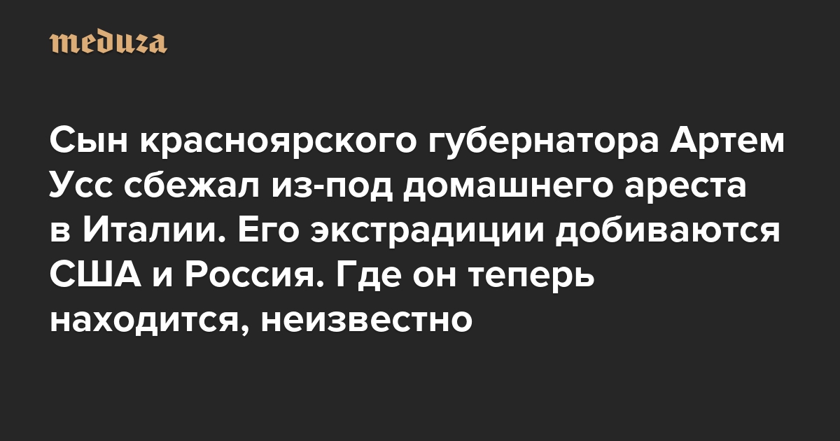 Сын красноярского губернатора Артем Усс сбежал из-под домашнего ареста в Италии Его экстрадиции добиваются США и Россия. Где он теперь находится, неизвестно
