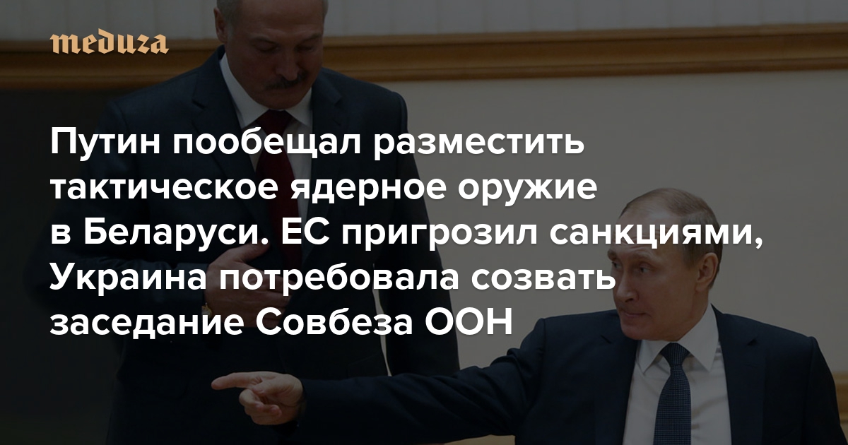 Путин пообещал разместить тактическое ядерное оружие в Беларуси. ЕС пригрозил санкциями, Украина потребовала созвать заседание Совбеза ООН