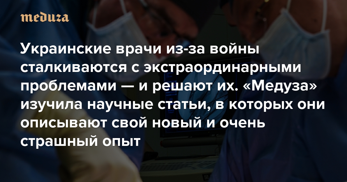 Украинские врачи из-за войны сталкиваются с экстраординарными проблемами — и решают их «Медуза» изучила научные статьи, в которых они описывают свой новый и очень страшный опыт (среди прочего это травмы гениталий и осколки снарядов в артерии)