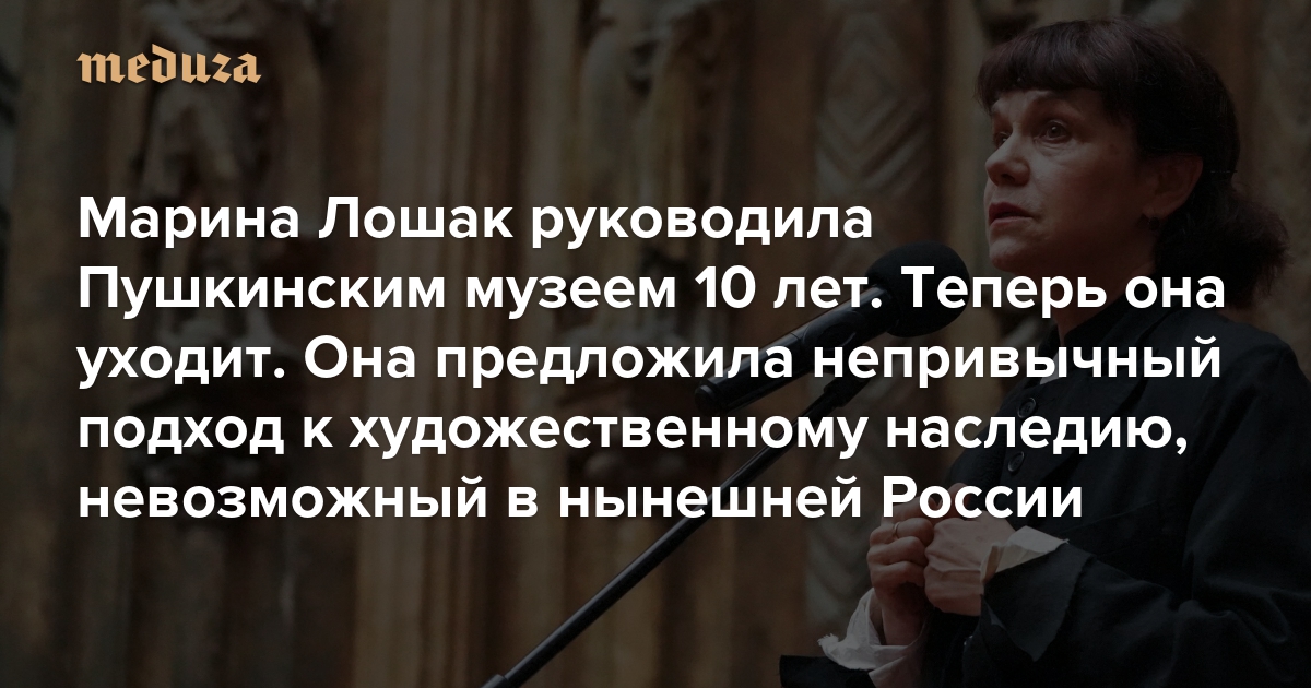 Марина Лошак руководила Пушкинским музеем 10 лет. Теперь она уходит Лошак предложила непривычный подход к художественному наследию, невозможный в нынешней России