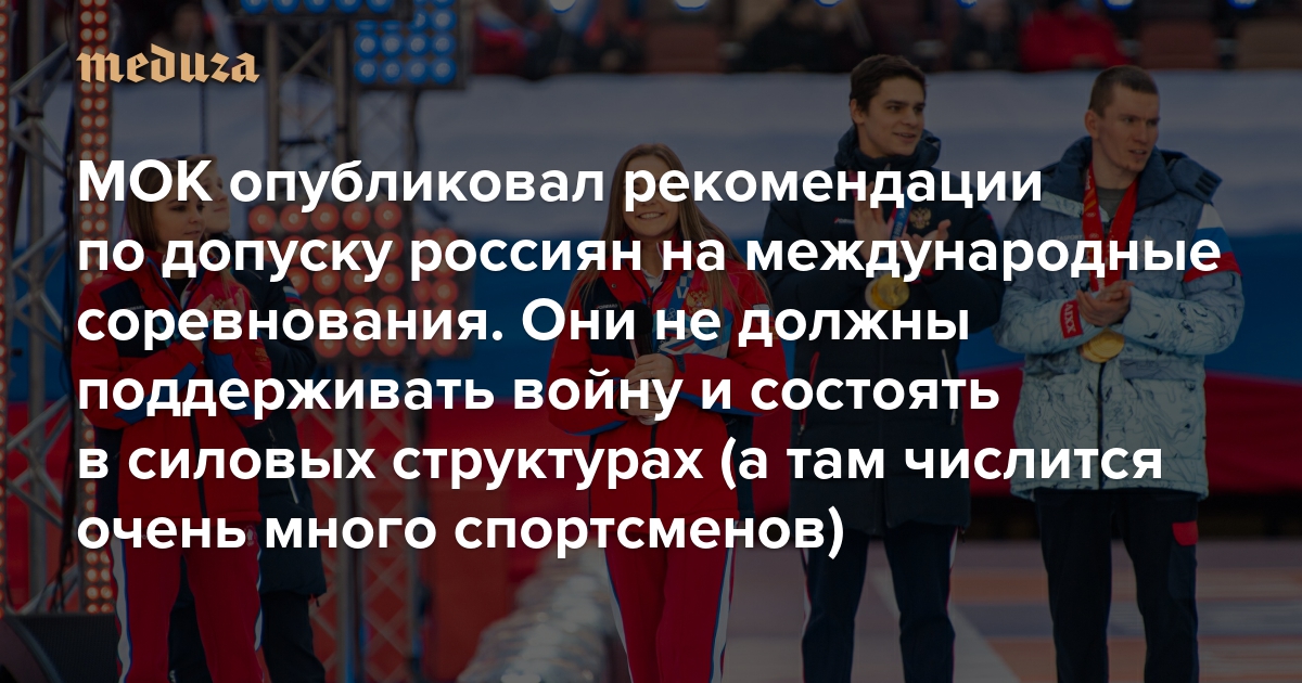 МОК опубликовал рекомендации по допуску россиян на международные соревнования Они не должны поддерживать войну и состоять в силовых структурах (а там числится очень много спортсменов)