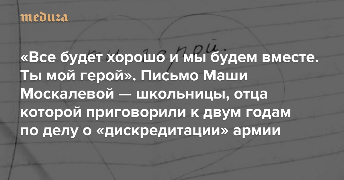 «Все будет хорошо и мы будем вместе. Ты мой герой» Письмо Маши Москалевой — школьницы, отца которой приговорили к двум годам по делу о «дискредитации» армии