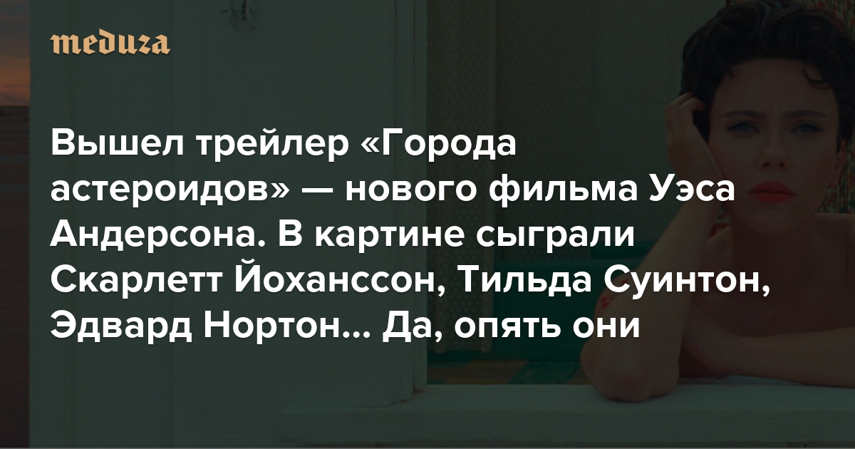 Вышел трейлер «Города астероидов» — нового фильма Уэса Андерсона В картине про инопланетян сыграли Скарлетт Йоханссон, Тильда Суинтон, Эдвард Нортон… Да, опять они