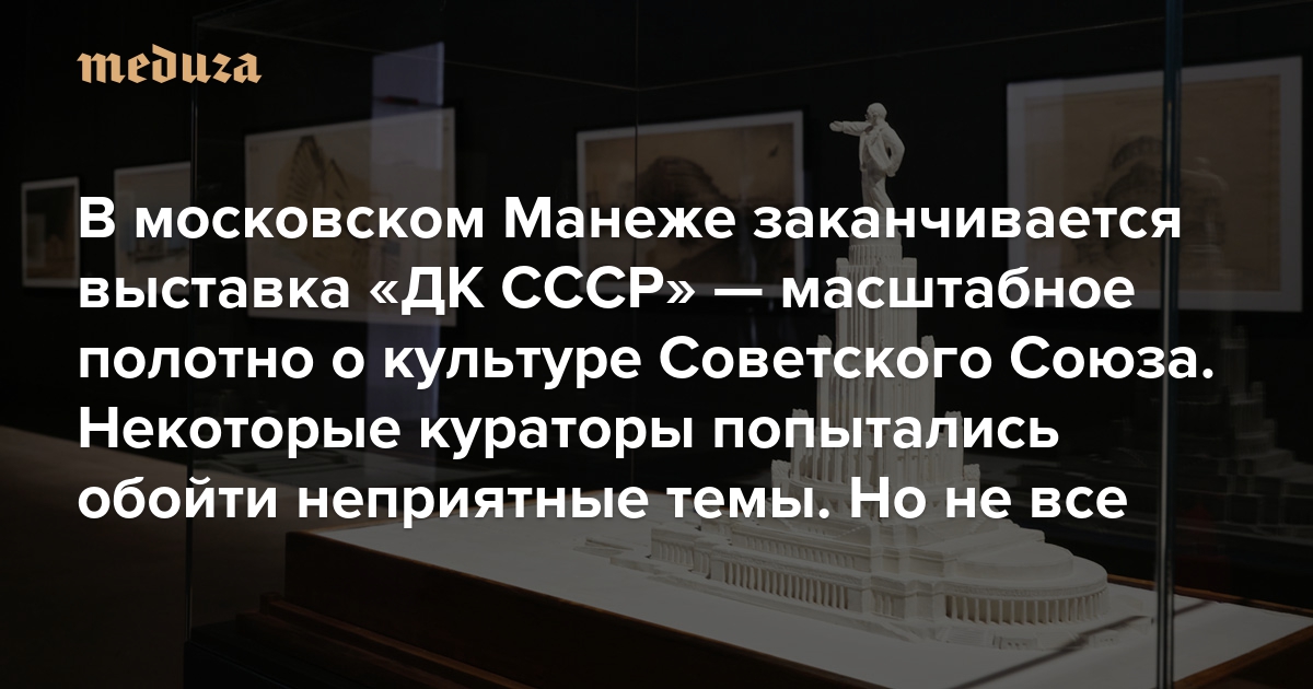 В московском Манеже заканчивается выставка «ДК СССР» — масштабное полотно о культурной жизни Советского Союза Некоторые кураторы попытались обойти неприятные темы. Но не все