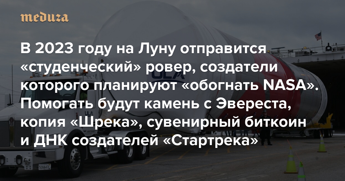 В этом году на Луну отправится «студенческий» ровер, создатели которого планируют «обогнать NASA» Помогать в гонке будут камень с Эвереста, копия «Шрека», сувенирный биткоин, газировка и ДНК создателей «Стартрека»
