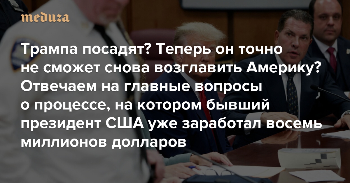 Трампа посадят? Теперь он точно не сможет снова возглавить Америку? Начался суд над бывшим президентом США. Отвечаем на главные вопросы о процессе, на котором Трамп уже заработал восемь миллионов долларов