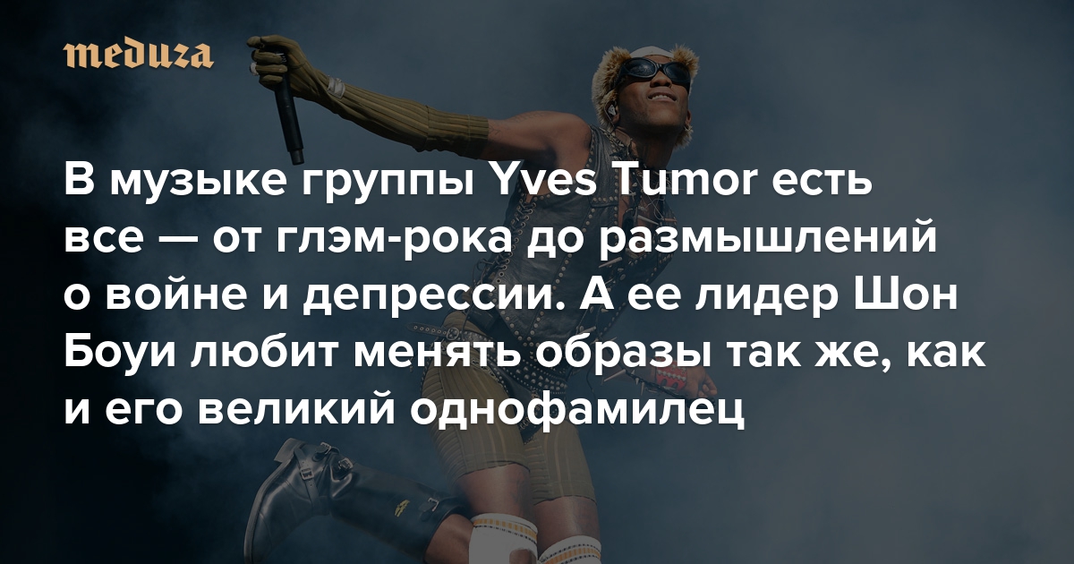 В музыке группы Yves Tumor есть все — от глэм-рока и отсылок к фильмам Кроненберга до размышлений о войне и депрессии А ее лидер Шон Боуи любит менять образы так же, как и его великий однофамилец