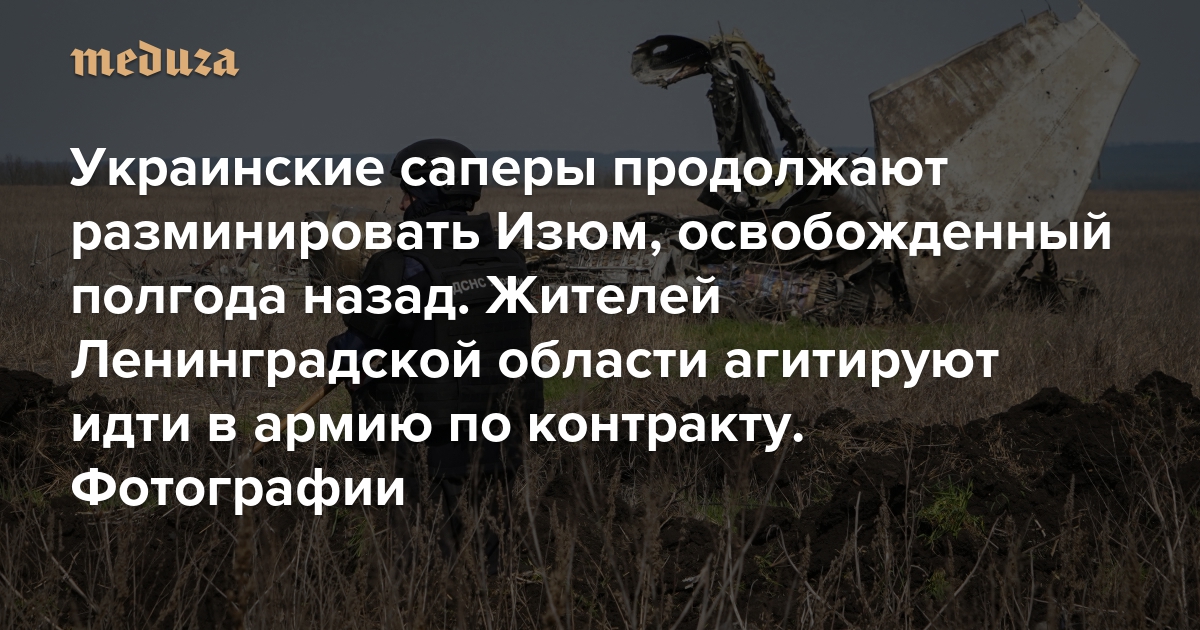 Украинские саперы продолжают разминировать Изюм, освобожденный полгода назад. Жителей Ленинградской области агитируют идти в армию по контракту Четыреста двенадцатый день войны. Фотографии