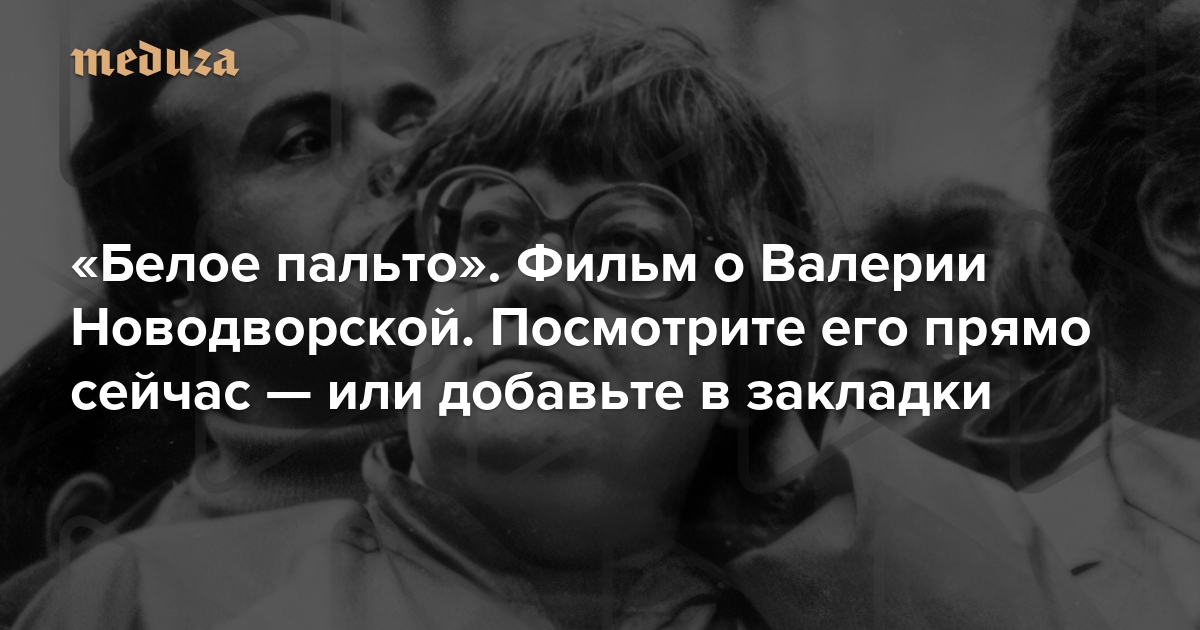 Берлинская студия Narra и кооператив независимых журналистов «Берег» выпустили документальный фильм «Белое пальто» — первую биографию Валерии Новодворской. «Медуза» с любезного разрешения авторов публикует фильм целиком. Посмотрите его сейчас — или сохраните в закладках, чтобы сделать это в выходные.