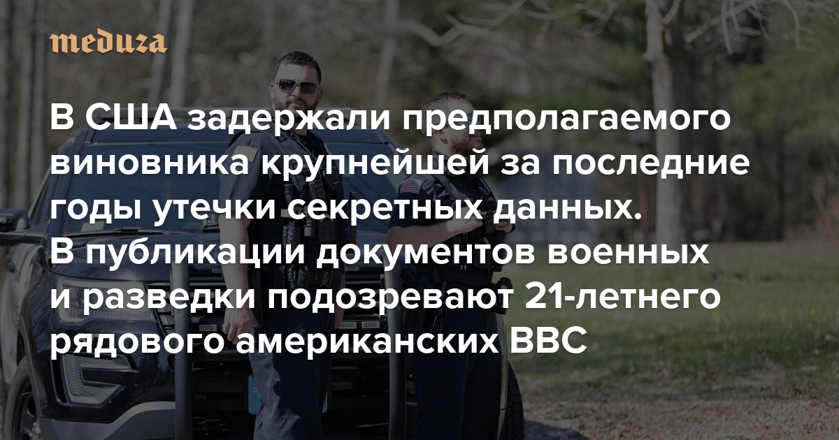 В США задержали предполагаемого виновника крупнейшей за последние годы утечки секретных данных В публикации документов военных и разведки подозревают 21-летнего рядового американских ВВС